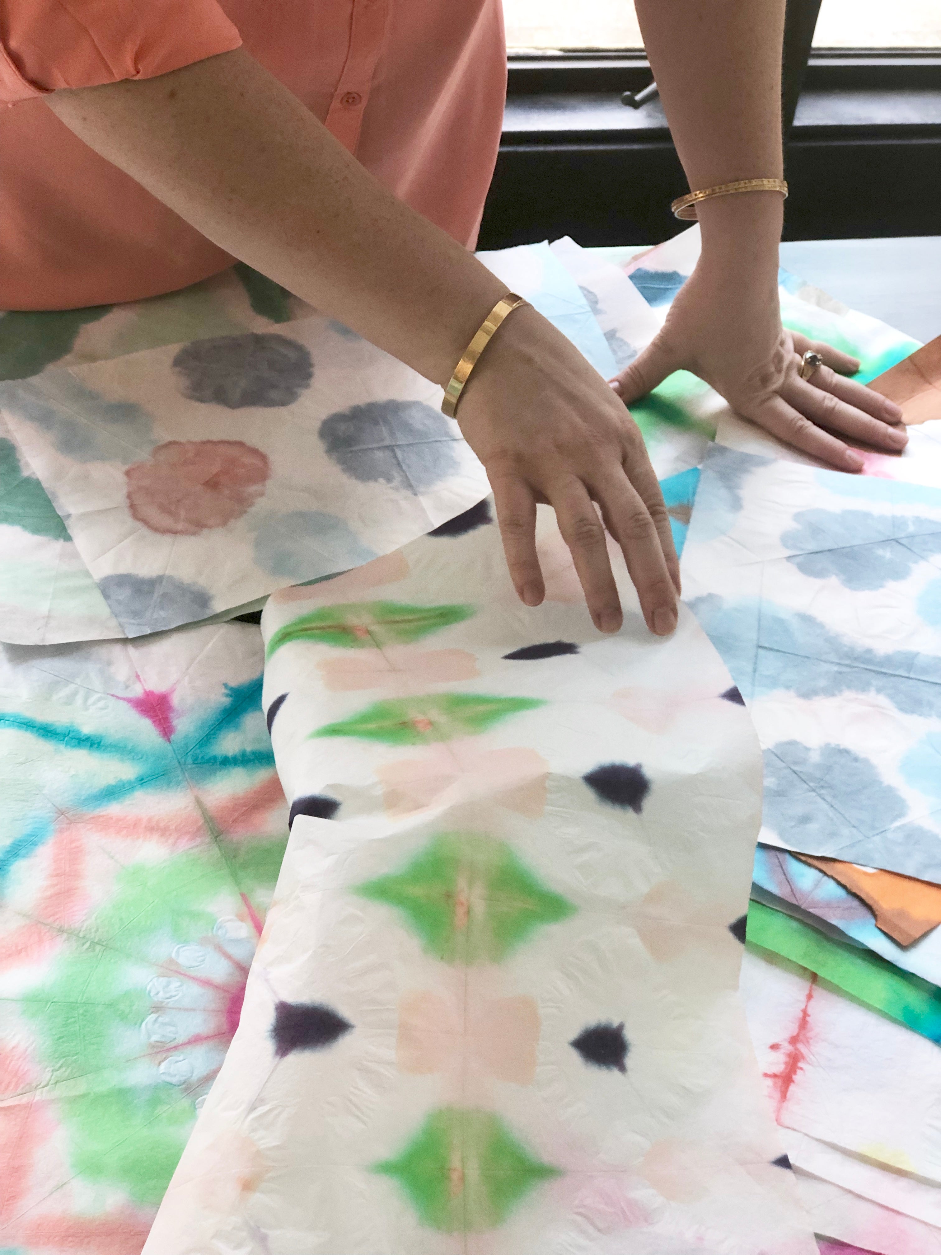 With over 30 years of practice, Shea creates original work rooted in the ancient Japanese paper-dyeing tradition of orizome — a disciplined, resist-based craft defined by precision, repetition, and restraint.