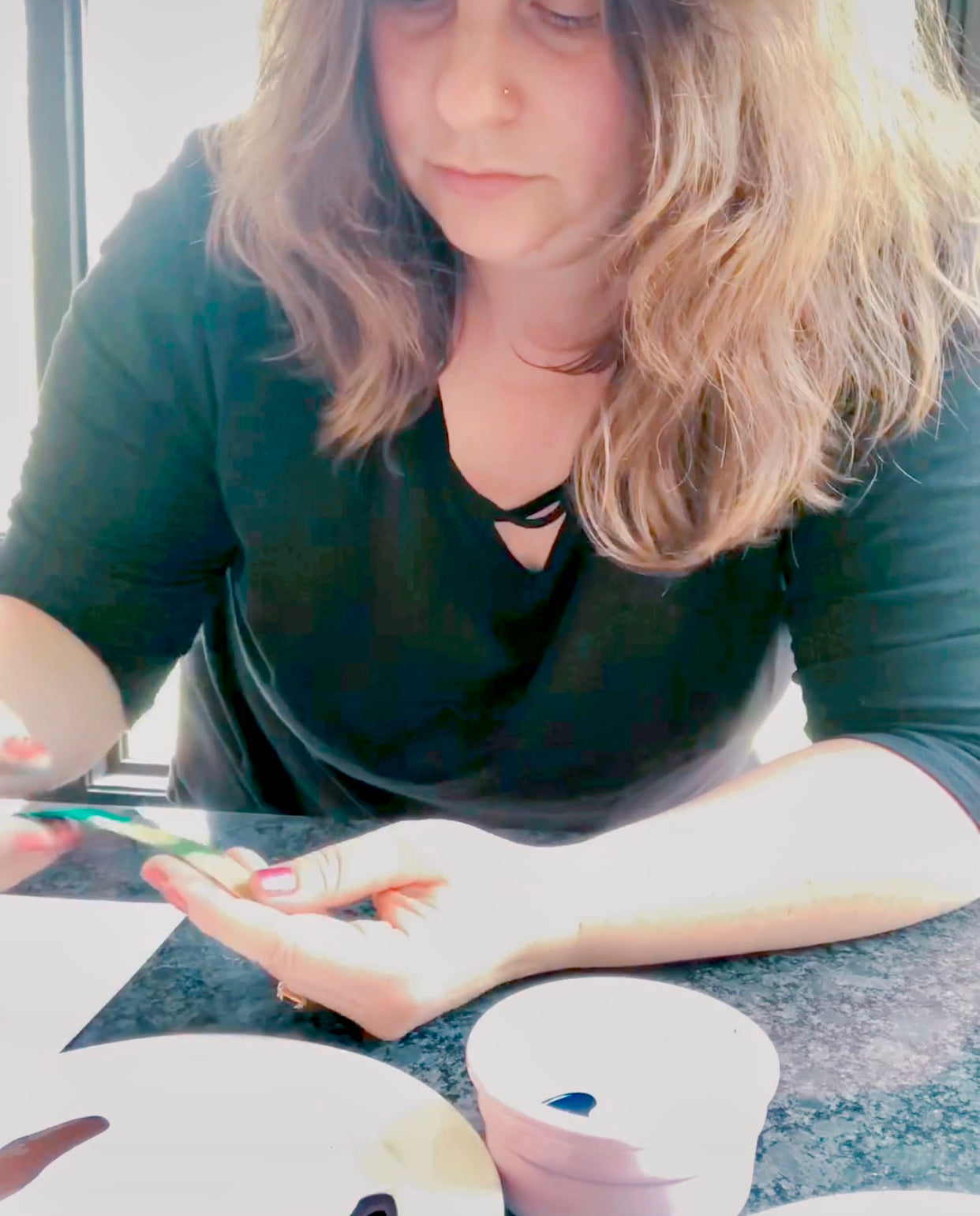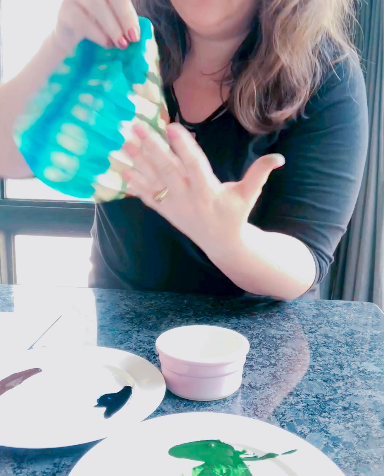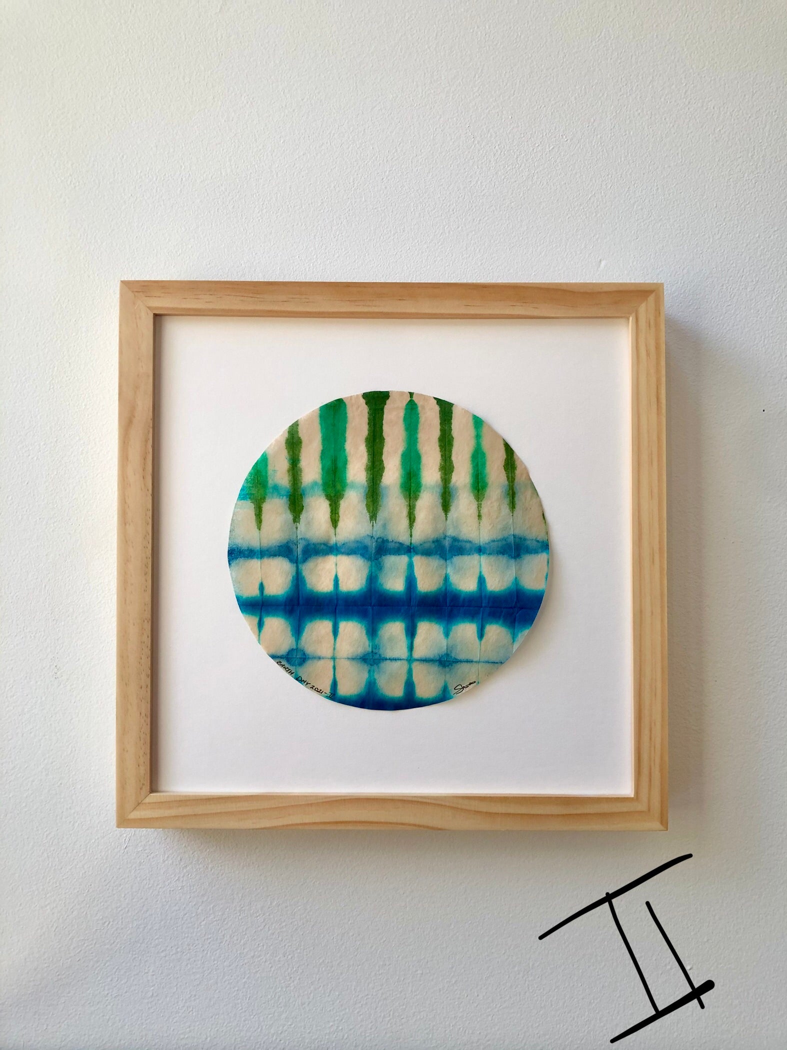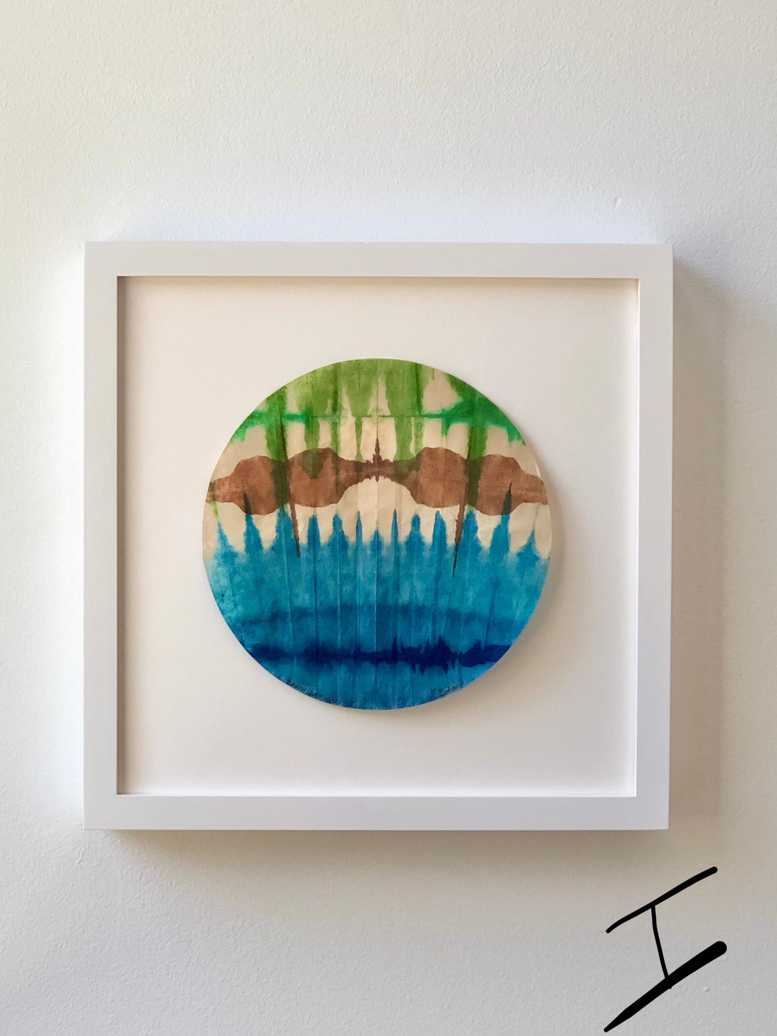 Each piece was dyed on round specialty paper in one session. They are delicate and should be hung in a dry place away from direct sunlight.