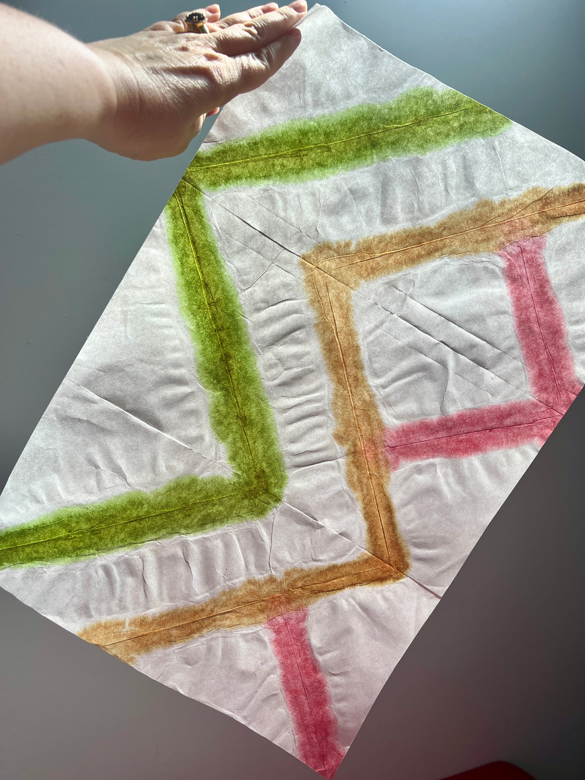 Allow the gentle waves to take over. Crafted from a single piece of hand-folded and dyed original art by Shea.