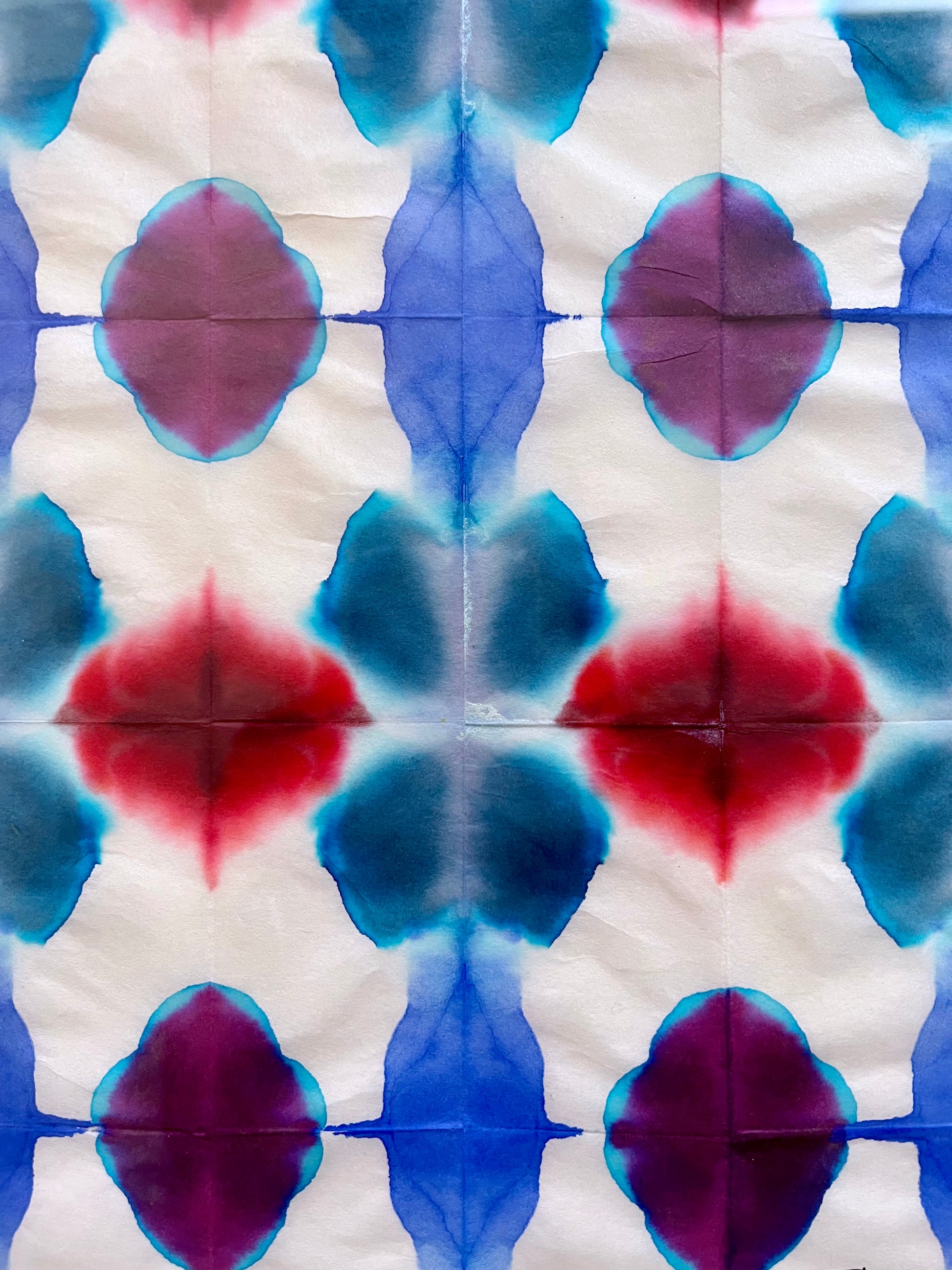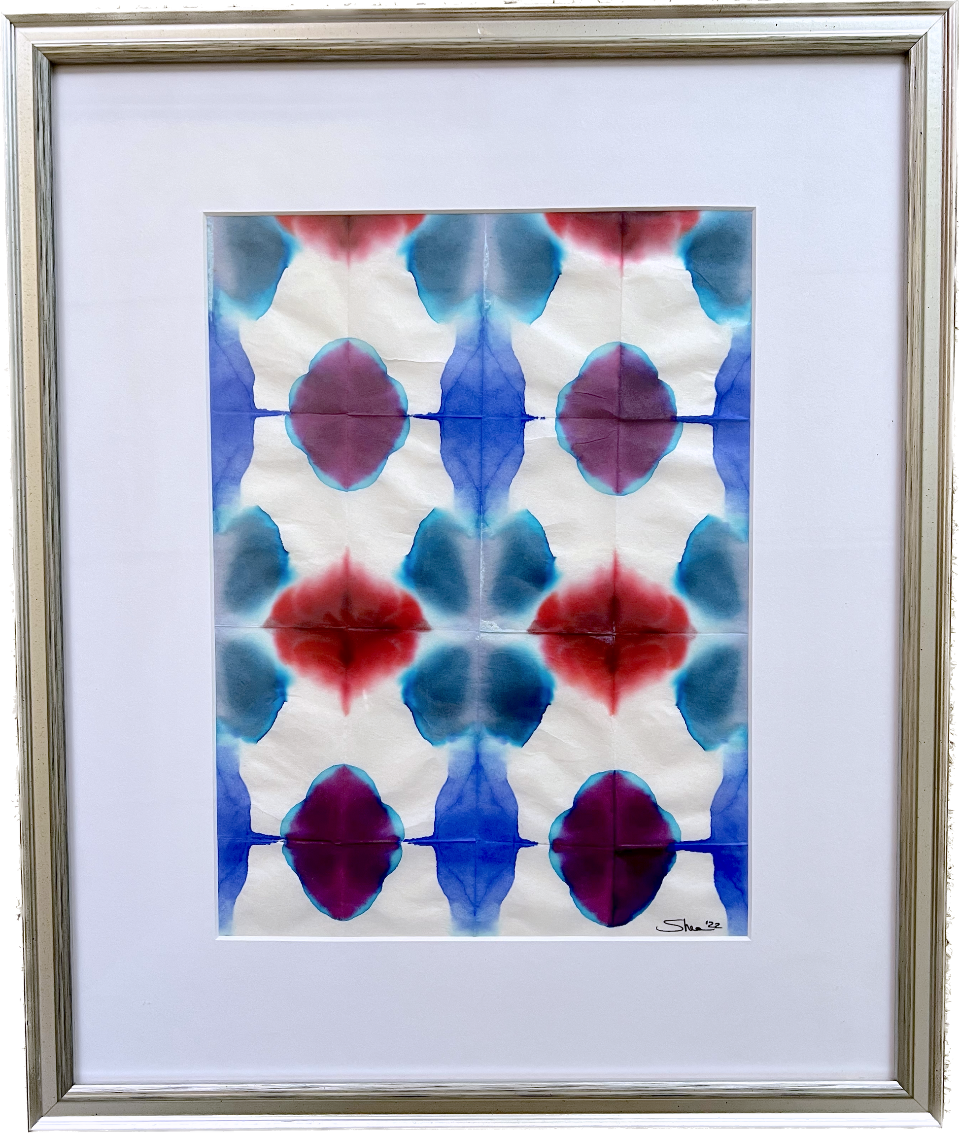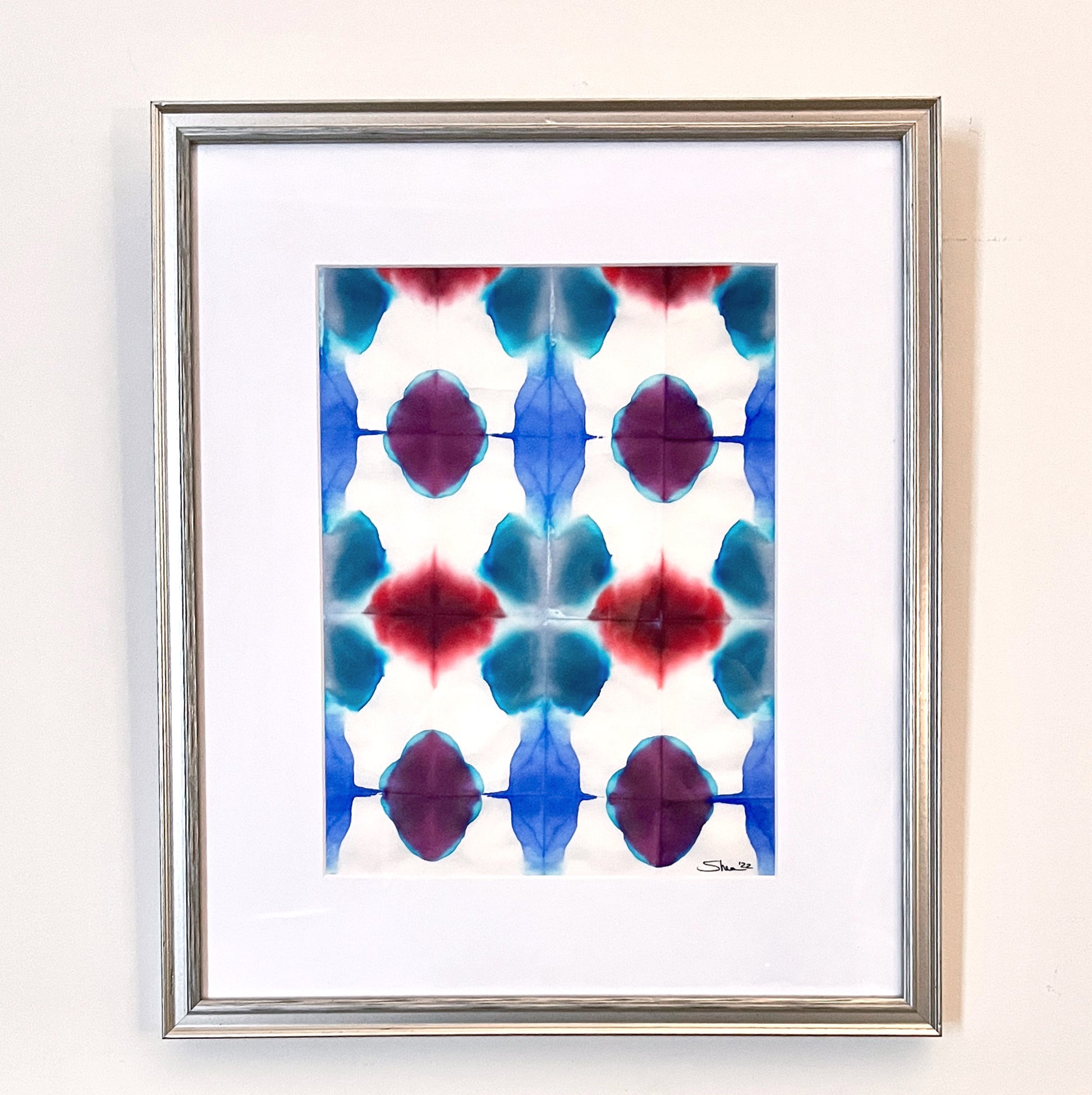 9x12 hand-dyed original, mixed media dyed without tools, matted & framed, ready to hang, free shipping.