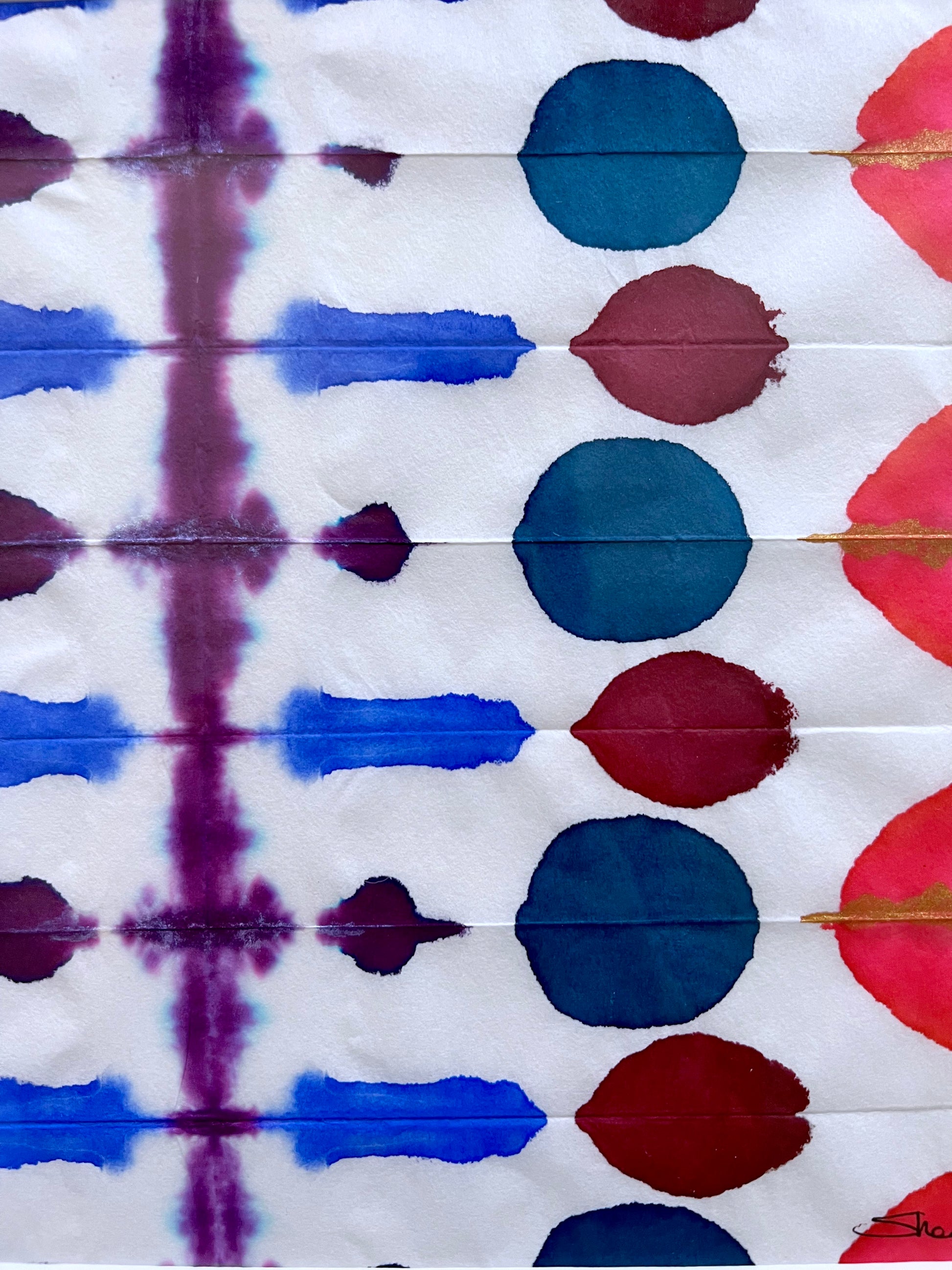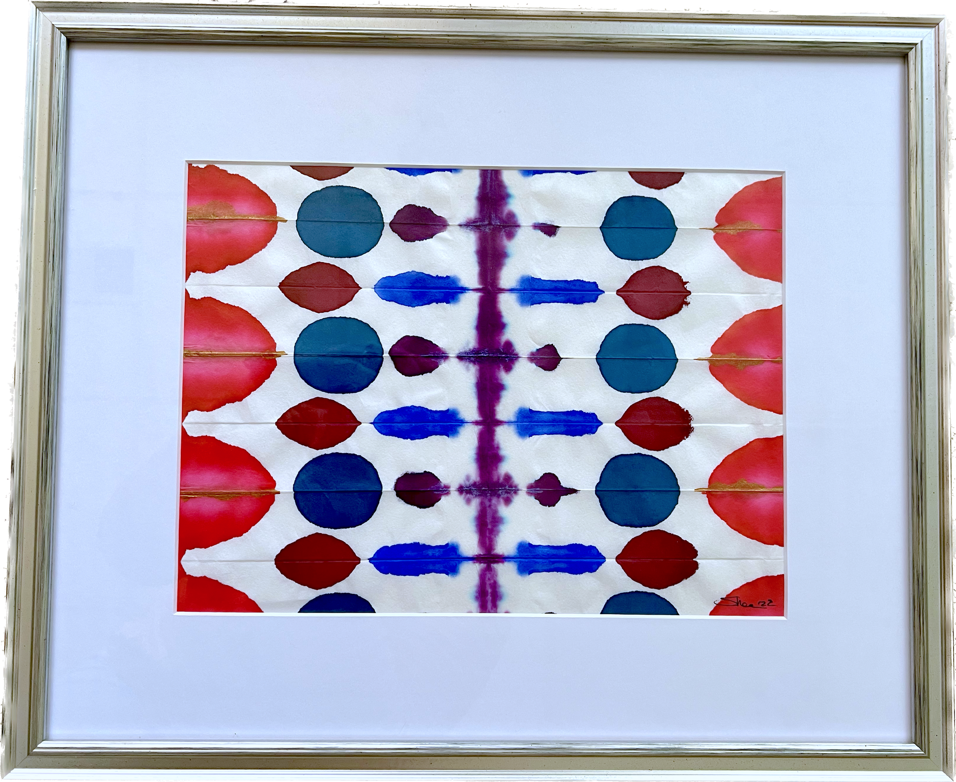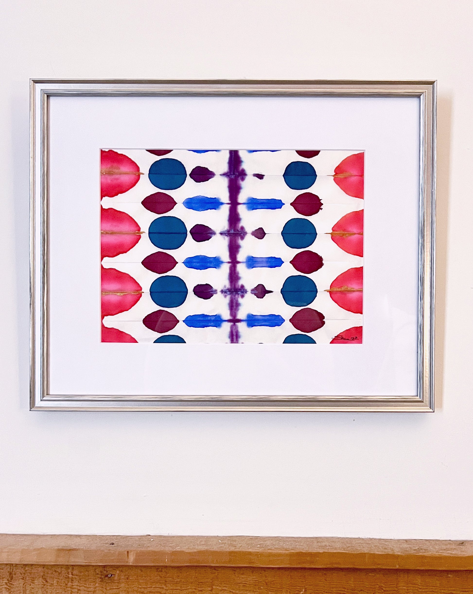 9x12 hand-dyed original, mixed media dyed without tools, matted & framed, ready to hang, free shipping.