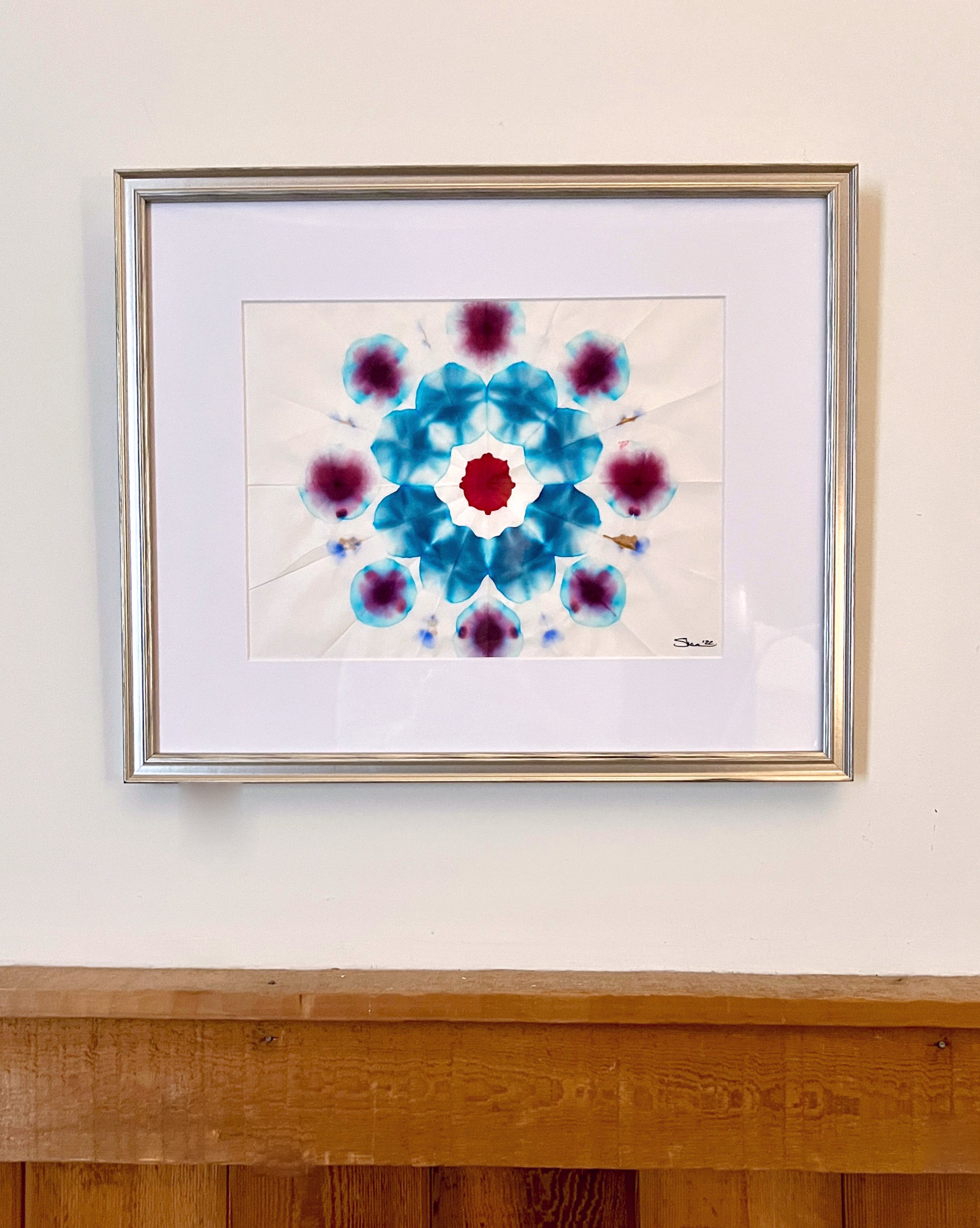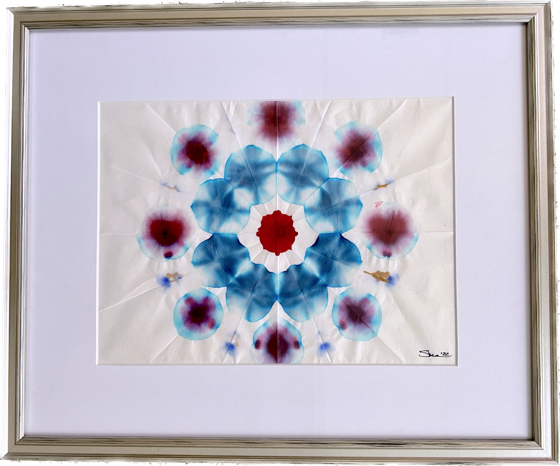 9x12 hand-dyed original, mixed media dyed without tools, matted & framed, ready to hang, free shipping.