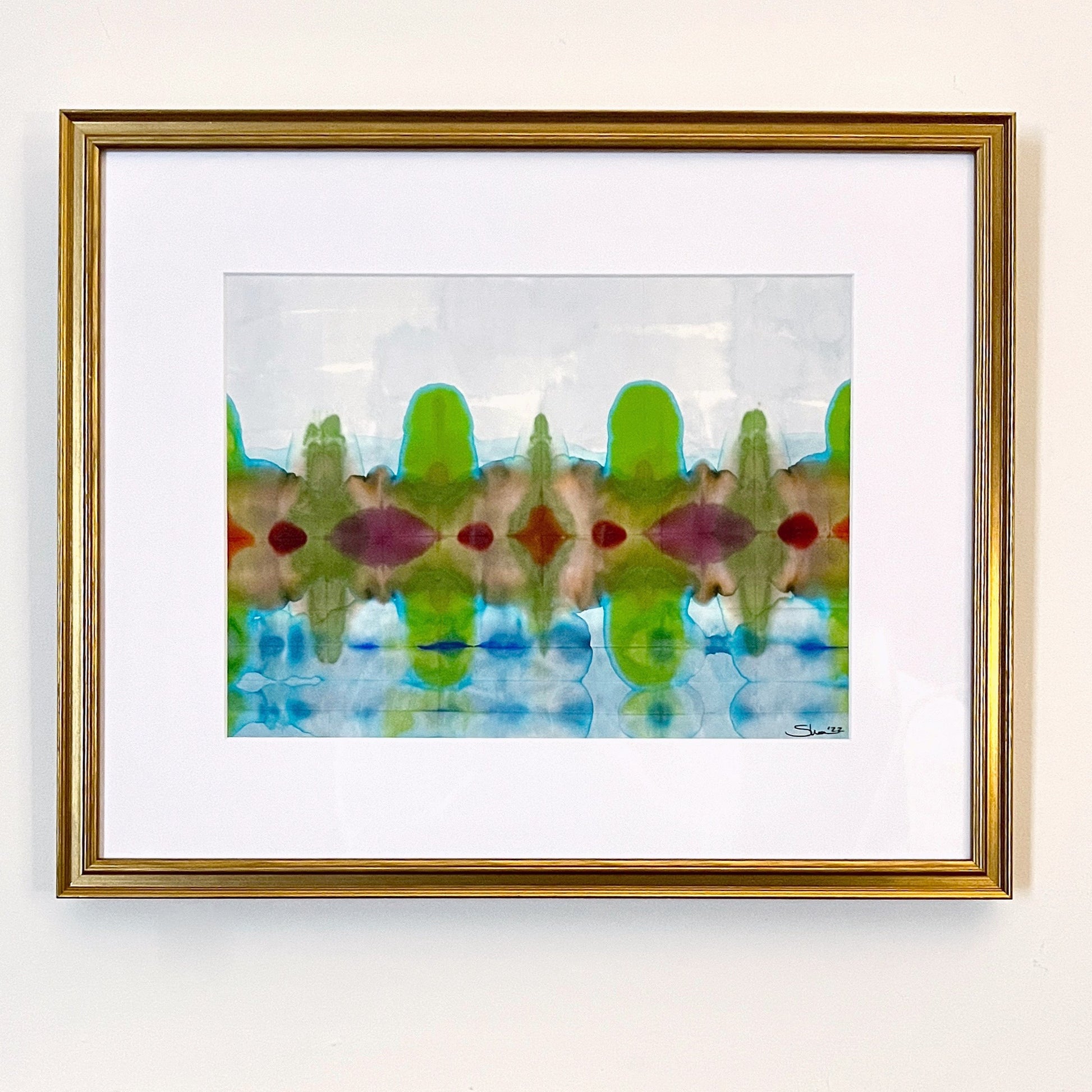 9x12 original piece by Shea, mixed media dyed without tools, matted & framed, ready to hang, free shipping.