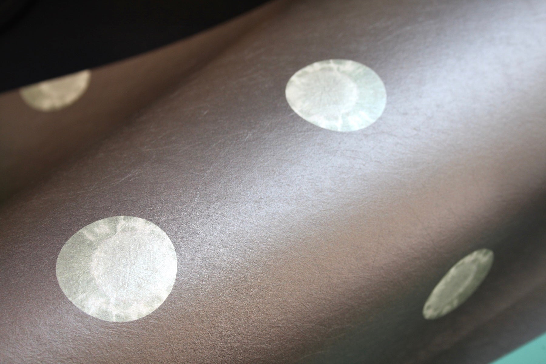 LUNAR is an enlightened polka dot that reimagines the classic; from a distance, the pattern reads structured and composed while up close, the hand-dyed dots reveal variation and imperfection. Original art hand-dyed by Shea.