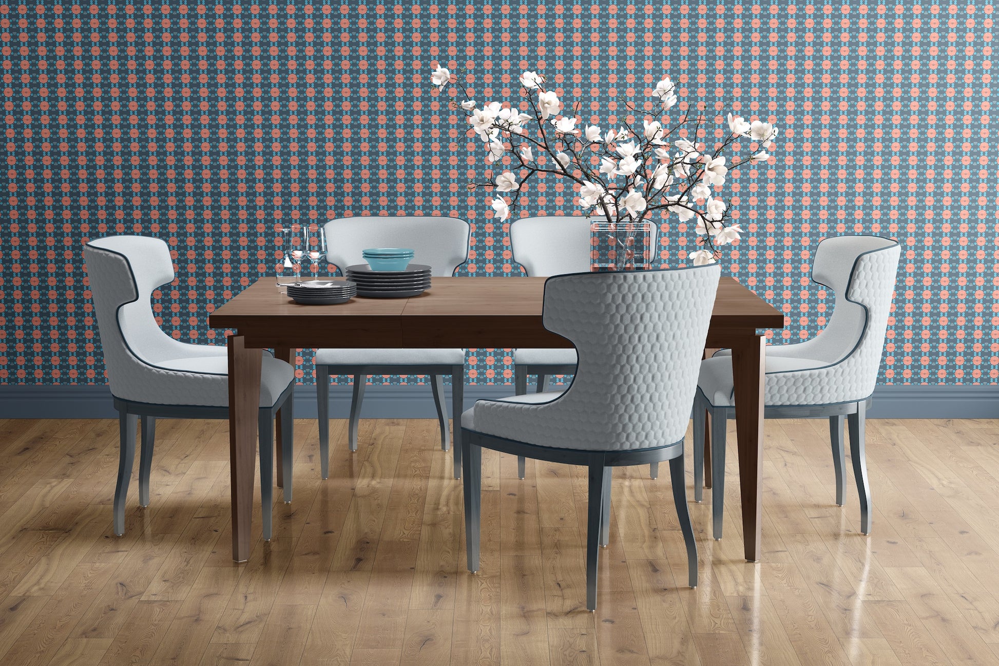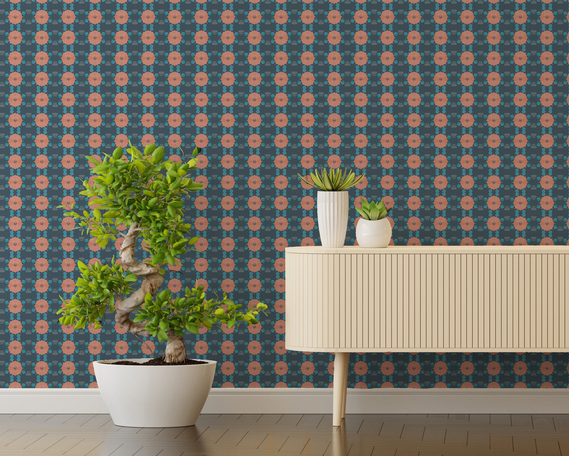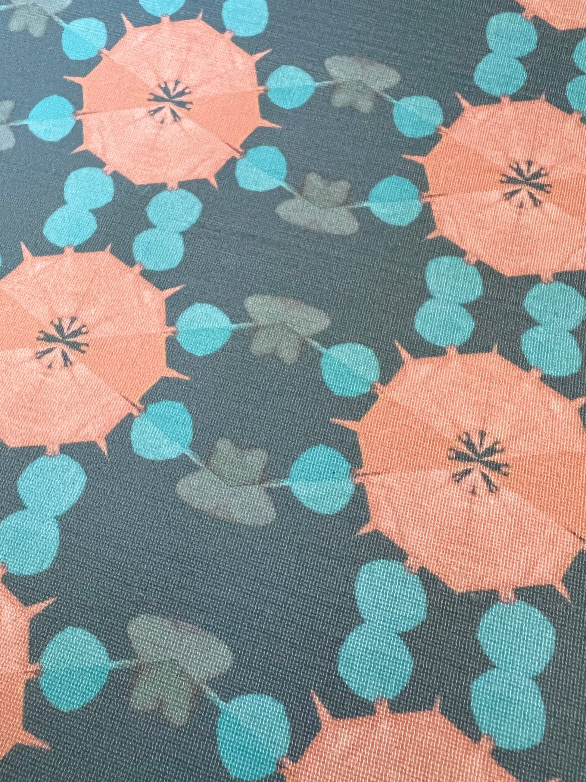 Coral bursts play with turquoise, denim and navy in a punchy, garland grid. Crafted from a single piece of hand-folded and dyed art by Shea.