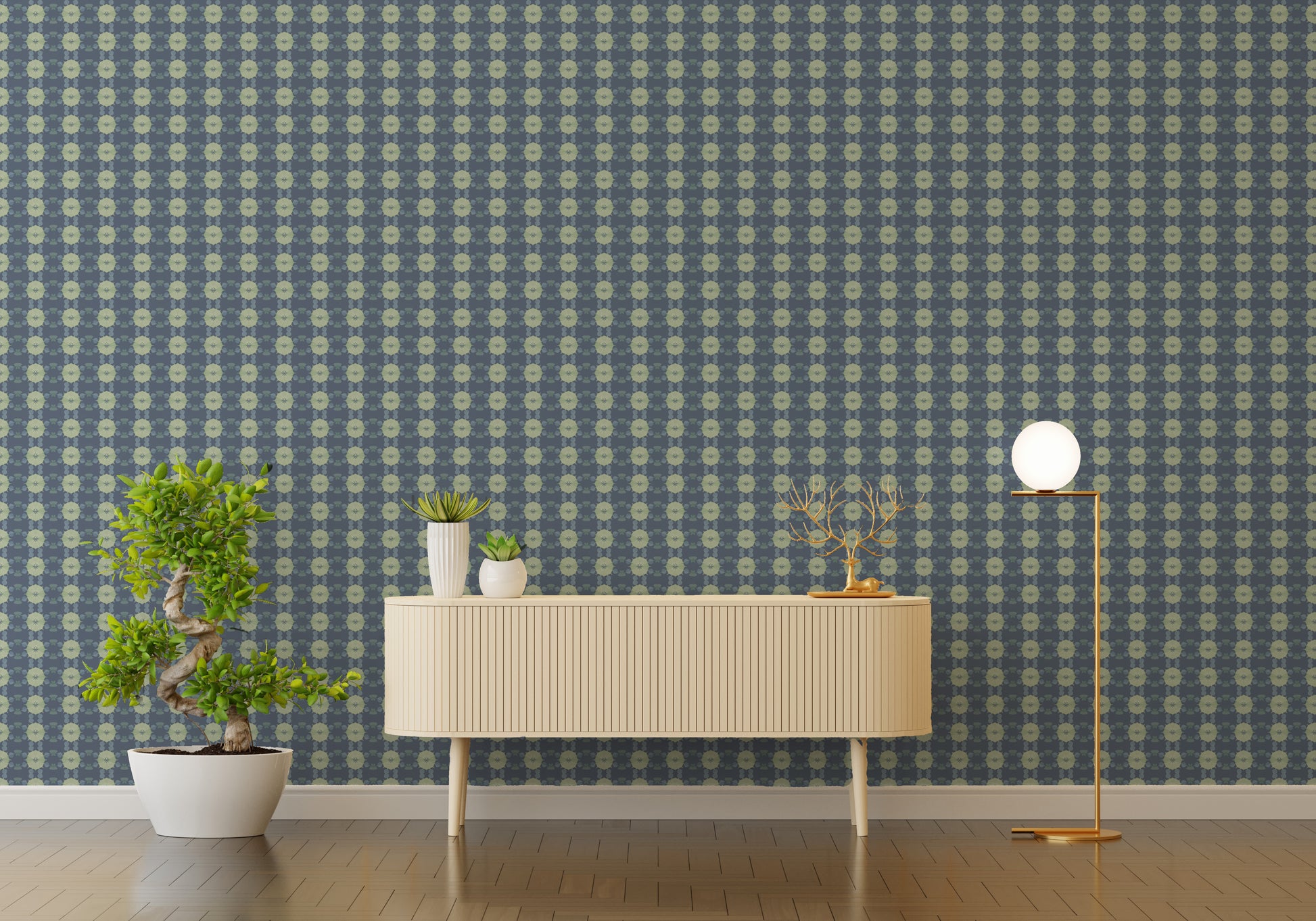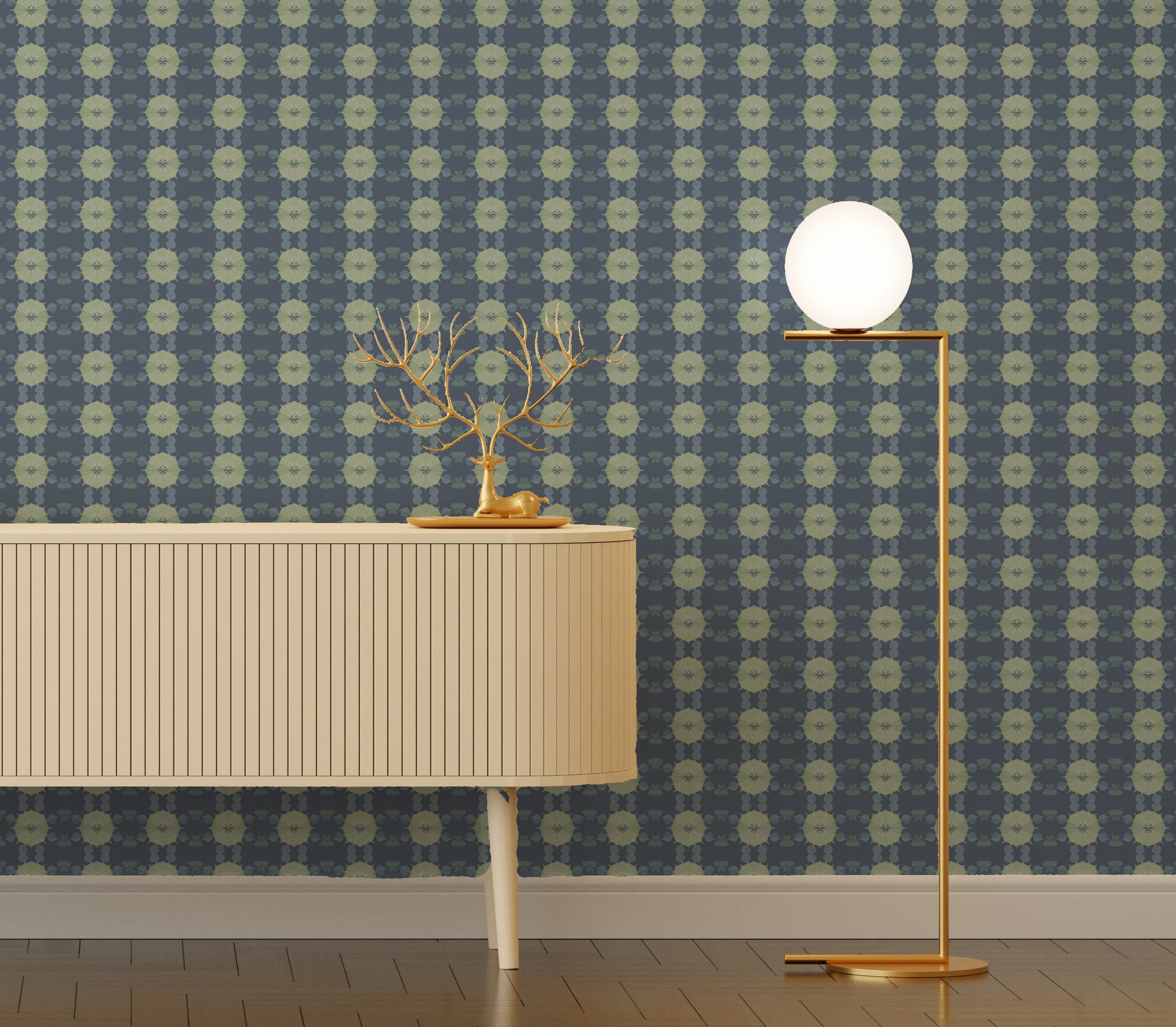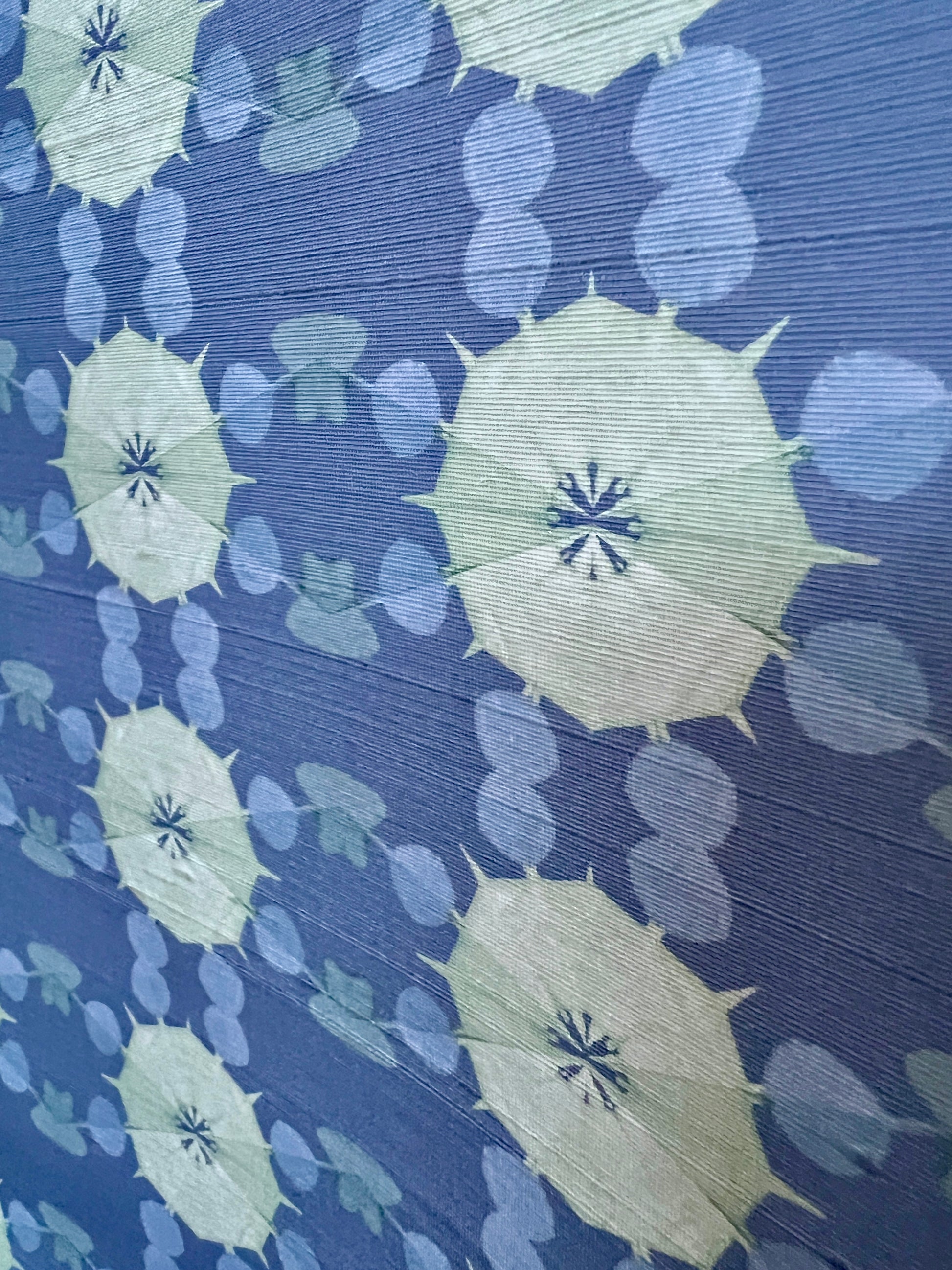 Sage bursts play with denim and hunter green in a punchy, garland grid. Crafted from a single piece of hand-folded and dyed art by Shea.