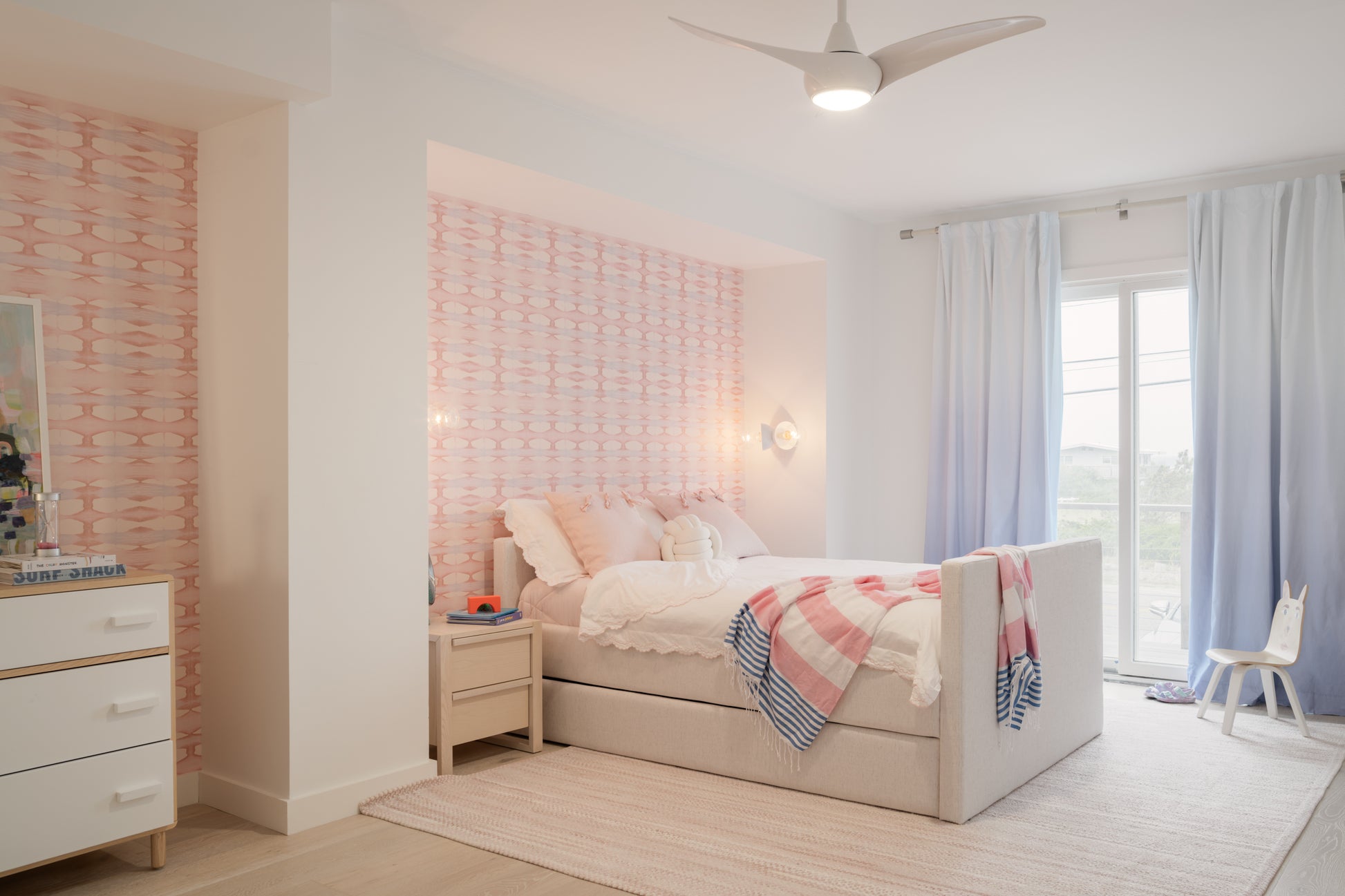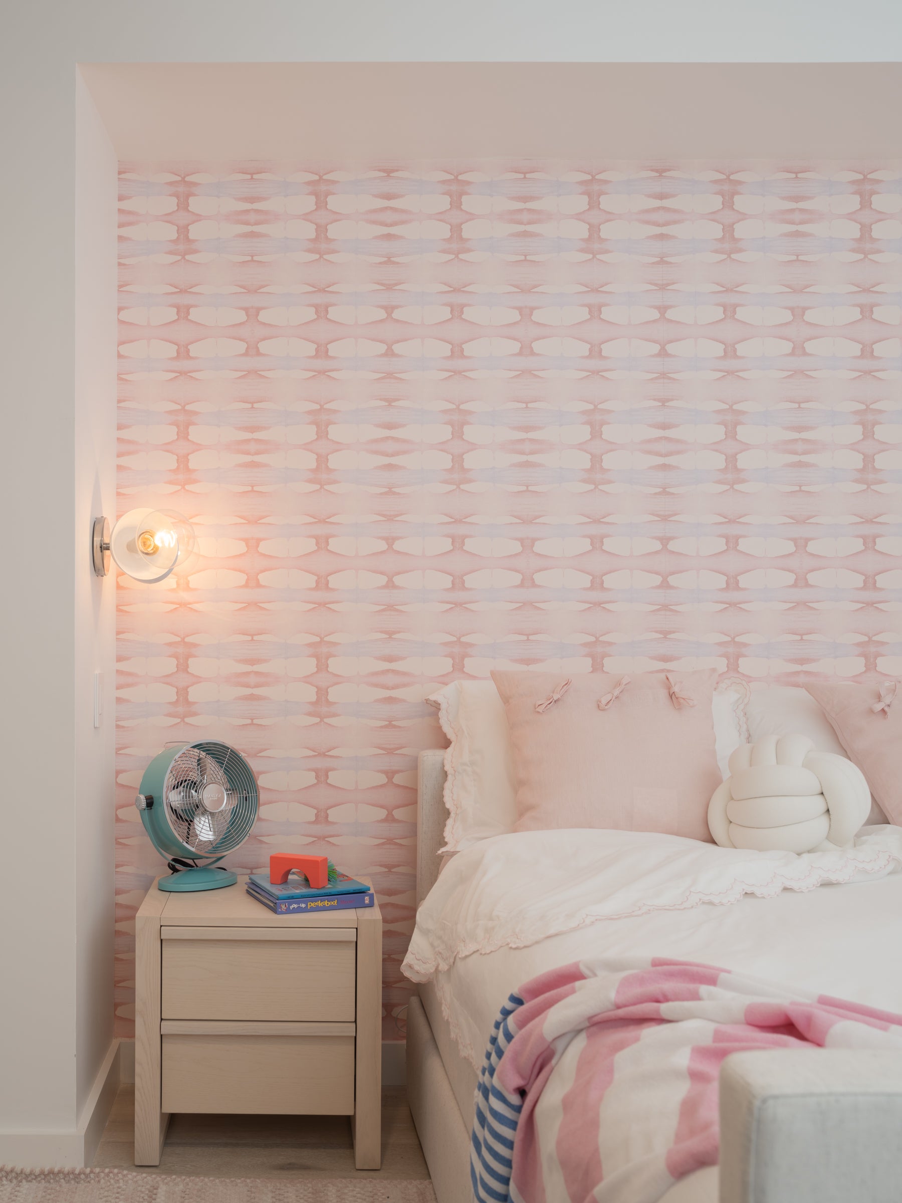 Ocean waves carve the shoreline leaving artful striations of soft peach, blush, and lavender in late afternoon light. Original hand-folded and dyed paper art by Shea.